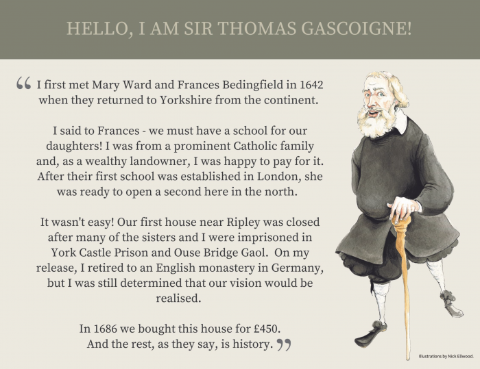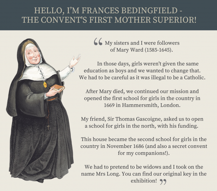 Illustrations of key characters behind the history of the Bar Convent museum, York.